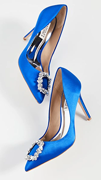 Badgley Mischka Cher Satin Buckle Cocktail High heel Pumps In Blue
