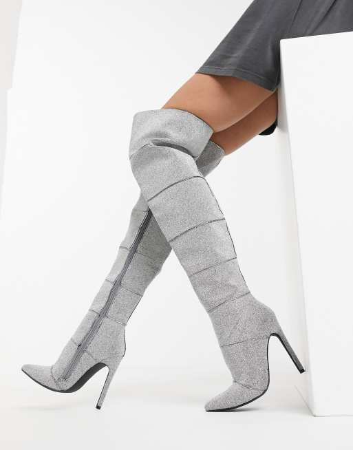 Steve Madden Wonders stiletto over the knee boot in silver ASOS