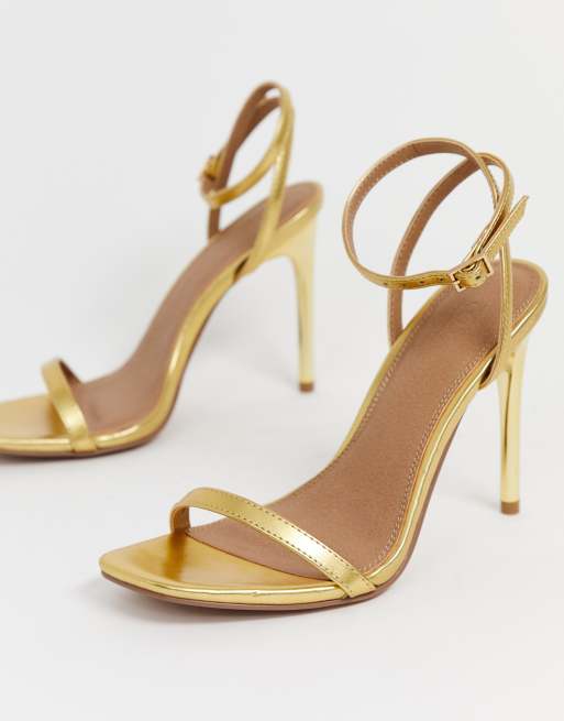 Yellow gold sandal clearance heels, ASOS DESIGN Nova barely there heeled sandals in gold clearance
