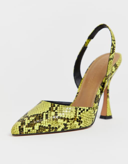 Lime clearance snake heels, ASOS DESIGN Pitcher sling back heels in lime snake clearance