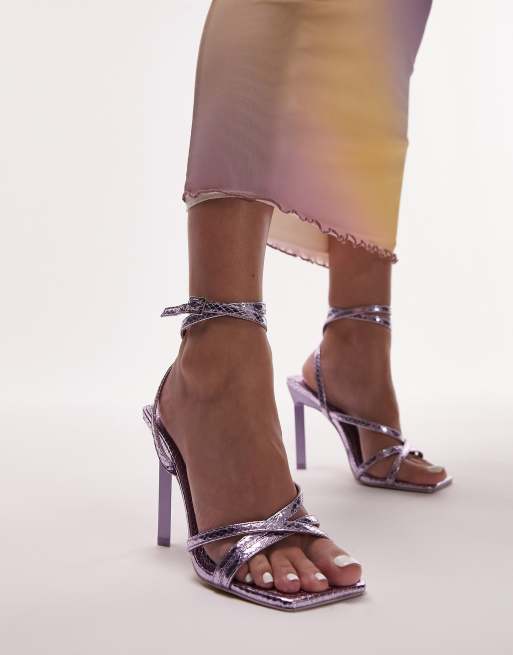 Topshop Ellie square toe barely there heeled sandal in lilac