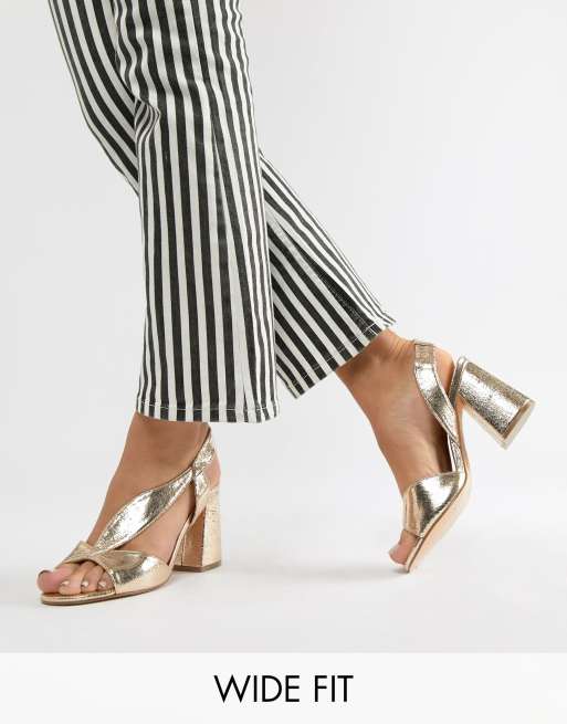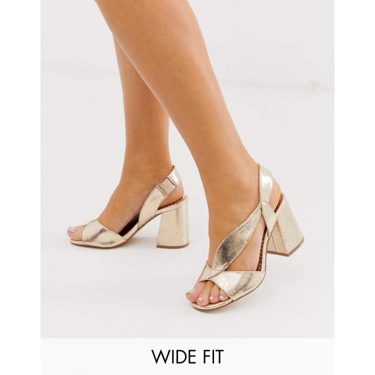 River island wide fit clearance block heeled sandals in gold, River Island Womens Rose Gold Wide Fit Strappy Heeled Sandals clearance