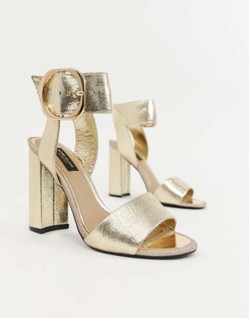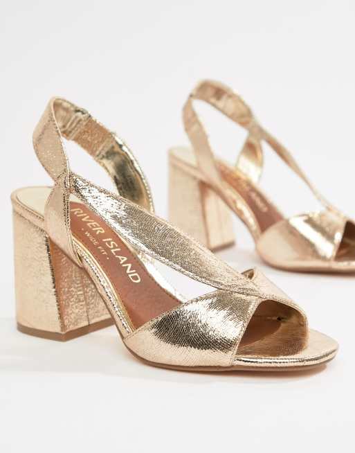 River island wide fit clearance block heeled sandals in gold