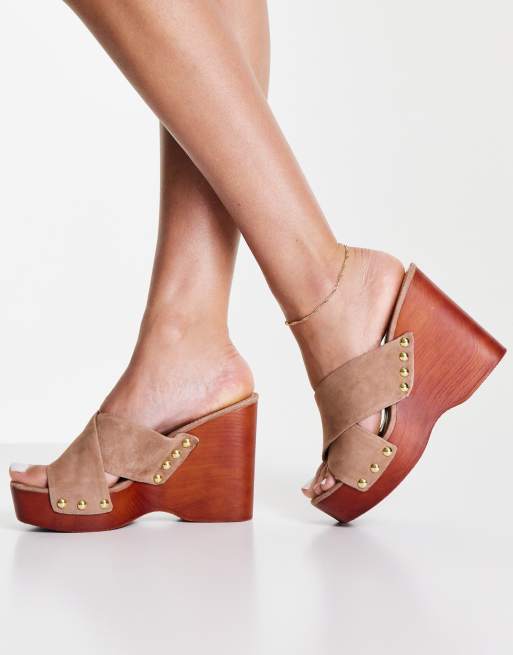 Steve Madden Emiko platform cross strap wedges in taupe suede