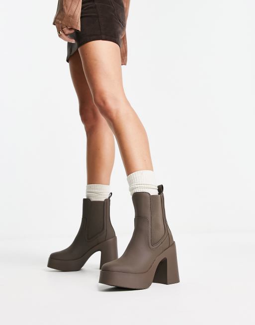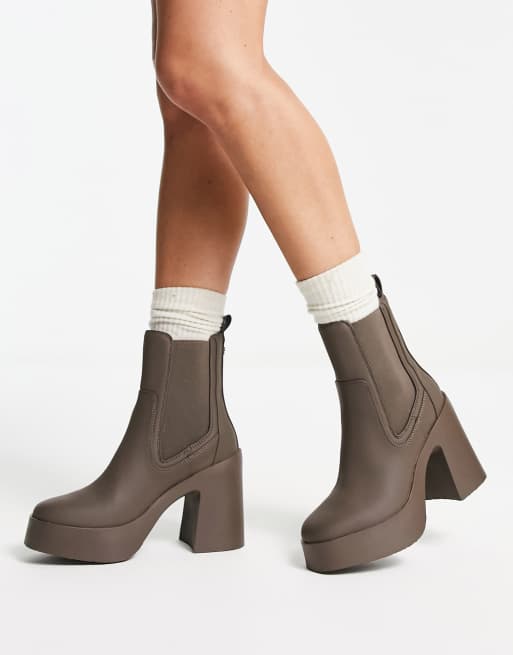 Steve Madden Climate heeled elastic side boots in dark taupe PU