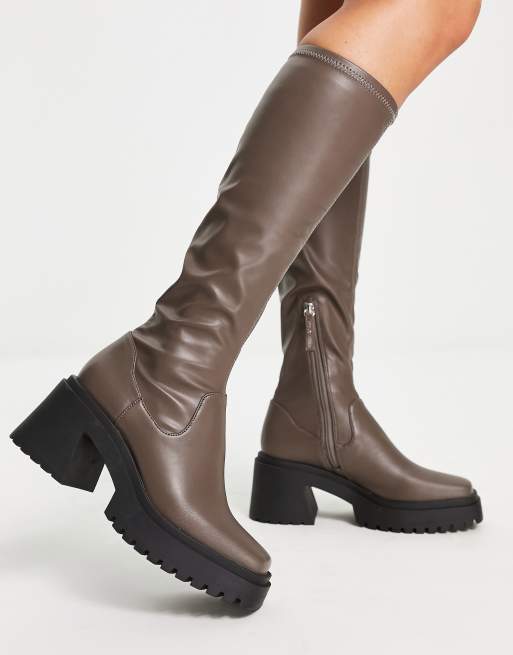 Steve Madden Jetstream heeled knee boots in taupe ASOS