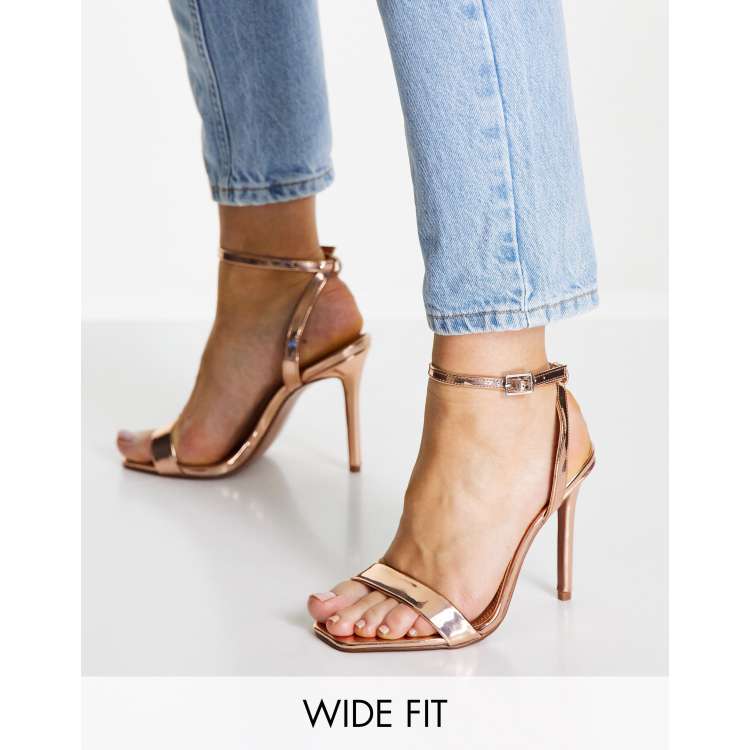 ASOS DESIGN Wide Fit Neva barely there heeled sandals in rose gold