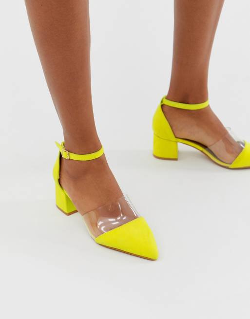 Truffle Collection Wide Fit Transparent Pointed Heels in neon