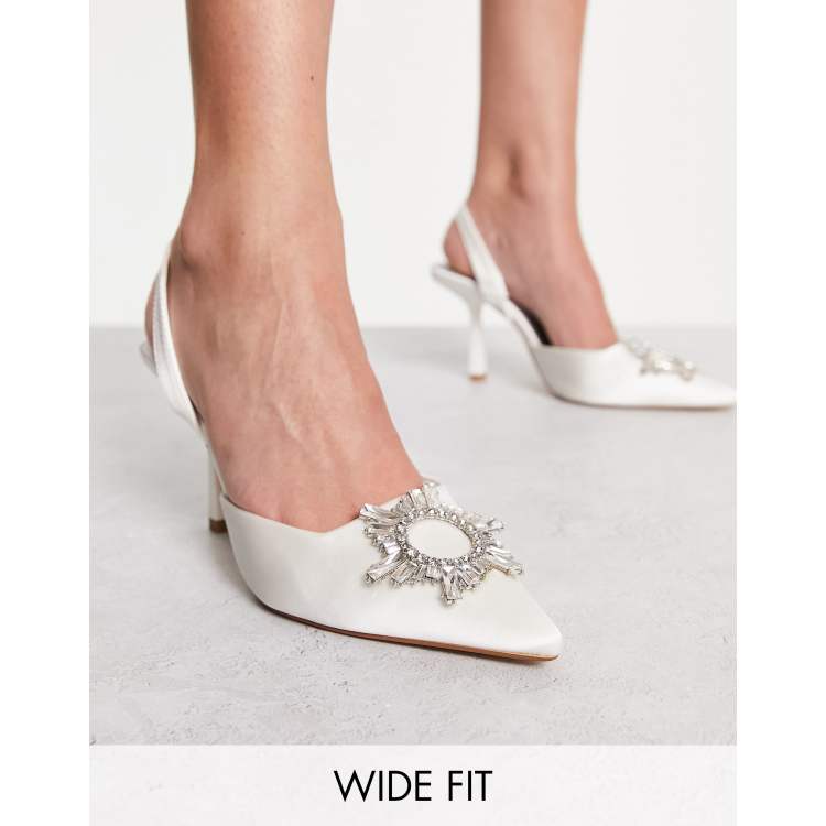 Asos ivory wedding clearance shoes, London Rebel embellished slingback bridal heeled shoes in ivory satin clearance