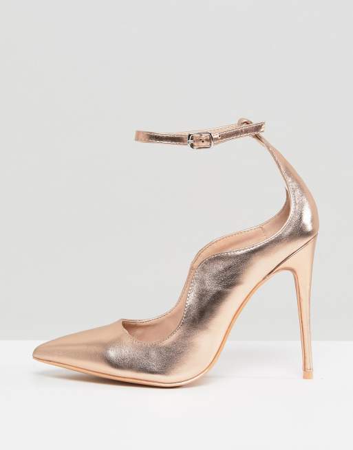 Lost ink gold clearance heels, Lost Ink Rose Gold Ankle Strap Court Shoes clearance