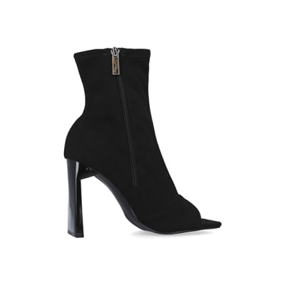 Black Suede Peep Toe Block Heel Ankle Boots New Look
