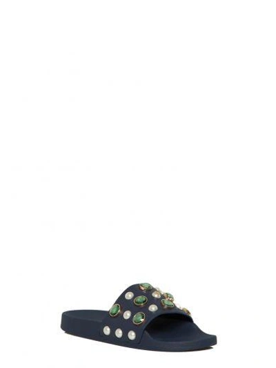 Tory Burch Vail Embellished Leather Slide Sandals In Navy Sea