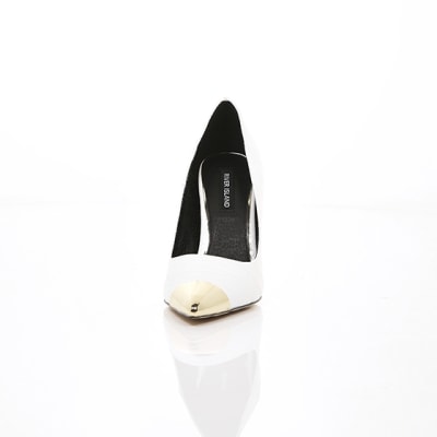 White metal toe skinny heel court shoes River Island
