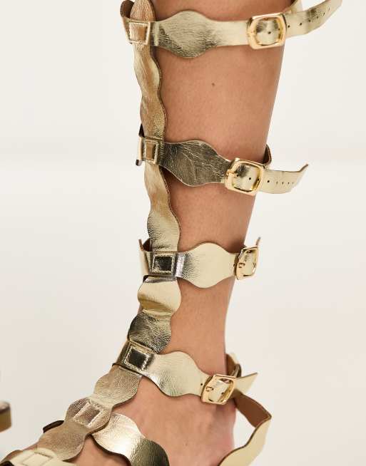Gold gladiator sandals clearance knee high, South Beach scallop edge gladiator sandal in gold ASOS clearance