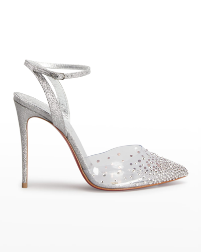 Christian Louboutin Spikaqueen Crystal Glitter Ankle strap Red