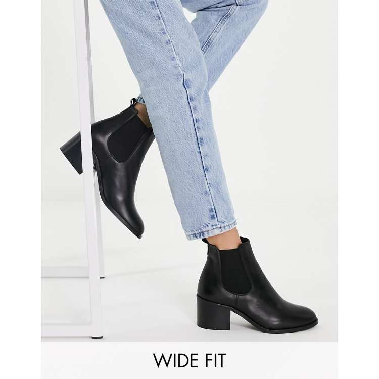DEPP Wide Fit leather block heel chelsea boots in black ASOS