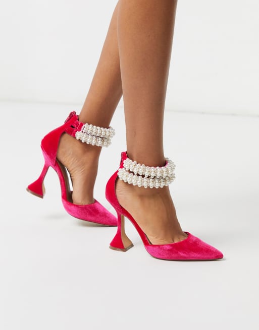 ASOS DESIGN Promise me pointed heels with pearls in pink velvet