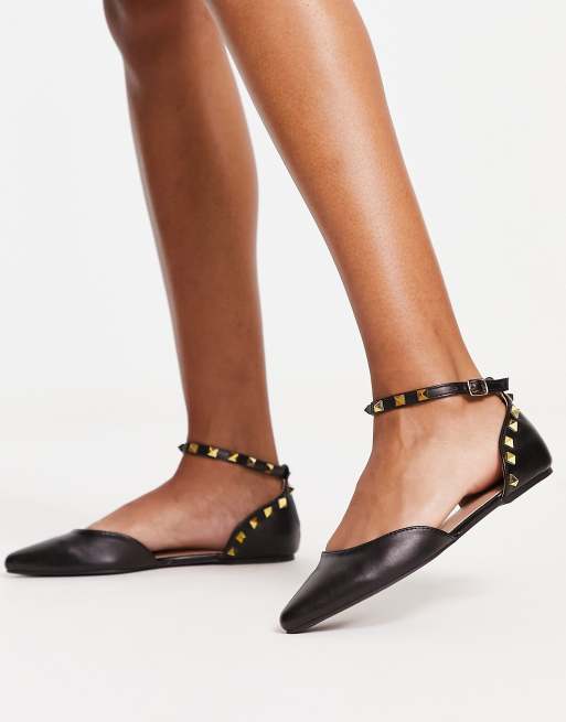 New Look studded back ankle strap flat shoes in black ASOS