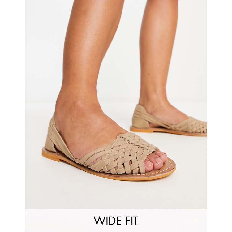 ASOS DESIGN Wide Fit Francis leather woven flat sandals in taupe