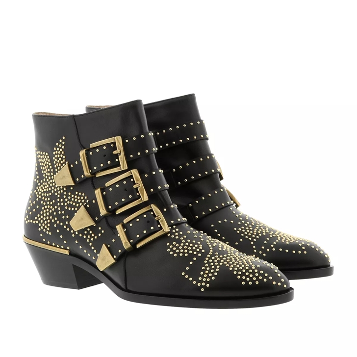 Chlo Susanna Leather Studs Boots Black Gold Ankle Boot