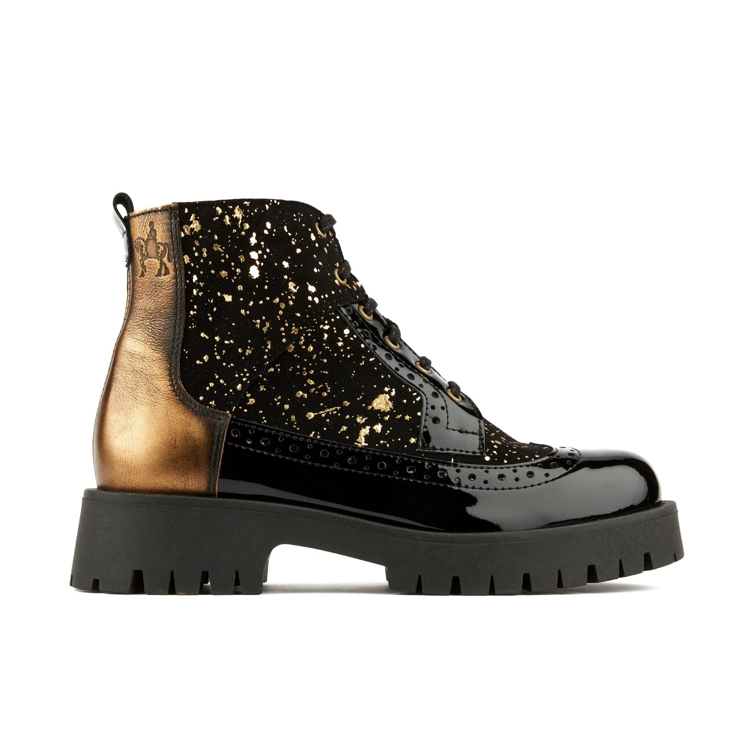 Hatter Platform Black Gold Womens Ankle Boots Embassy
