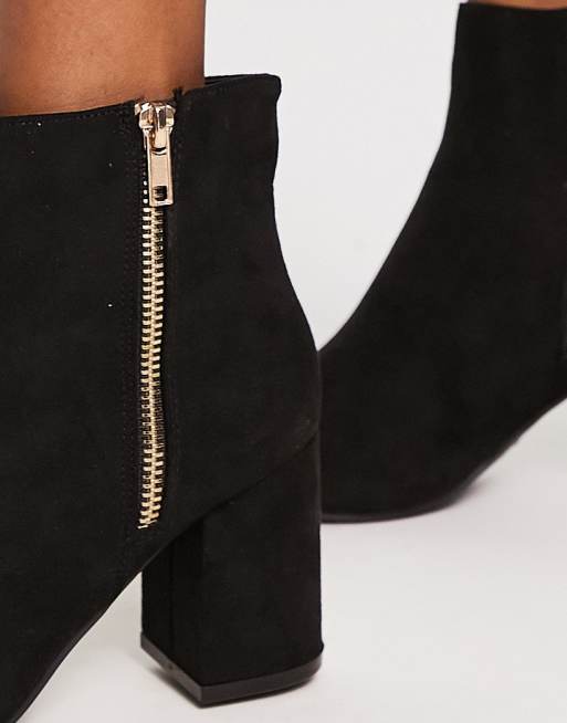 New Look heeled ankle boots with gold zip detail in black suedette