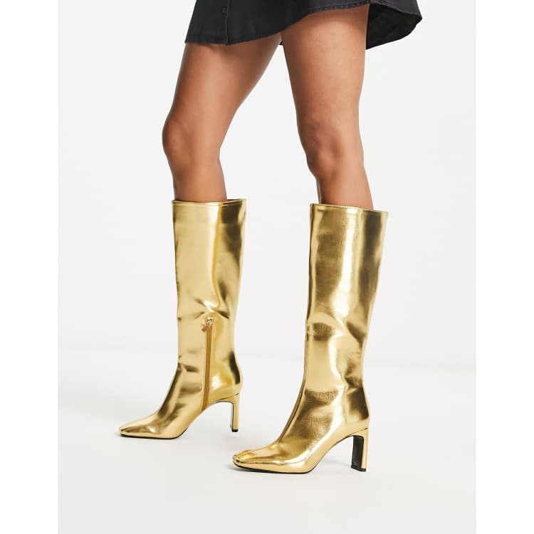 Gold Wide Fit High Heel Knee Boots Footwear PrettyLittleThing