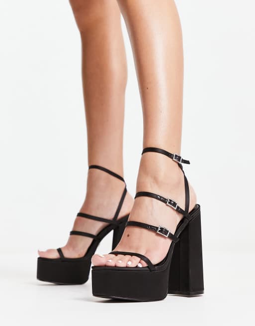 Steve Madden Elavator platform sandals in black satin