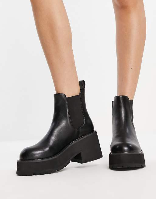 Rule London Exclusive Roe chunky heeled chelsea boots in black PU
