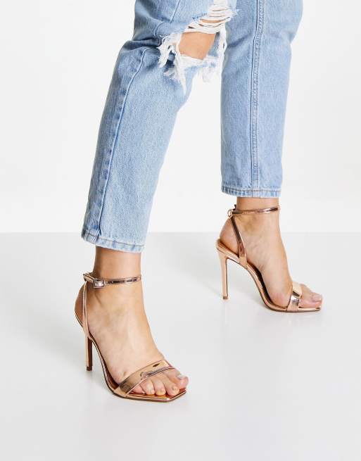 ASOS DESIGN Wide Fit Neva barely there heeled sandals in rose gold