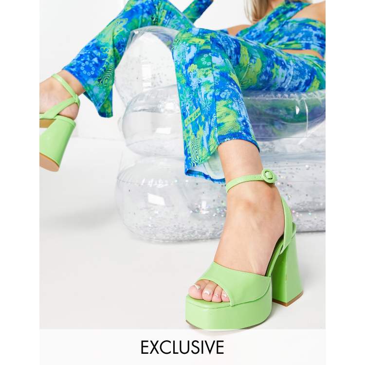 Glow Girl Apple Green Patent PU Lace Up Platform High Heels