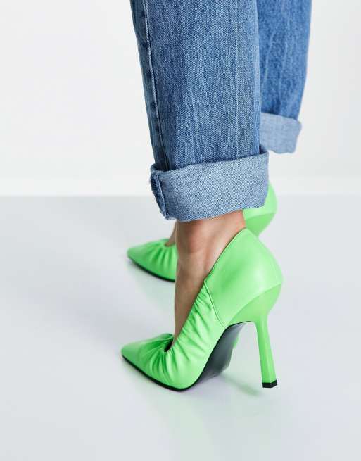 ASOS DESIGN Pepper ruched court shoes in bright green ASOS