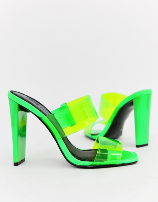 Clear neon green clearance heels, Wide Fit Pointed Toe Clear Wrap Up Heel clearance