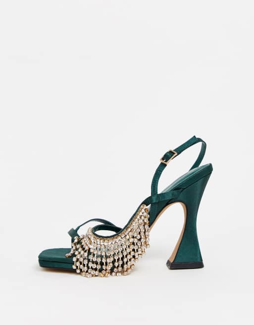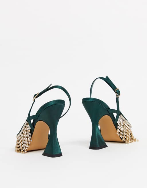 ASOS DESIGN Wide Fit Poppy embellished slingback high heeled shoes in green