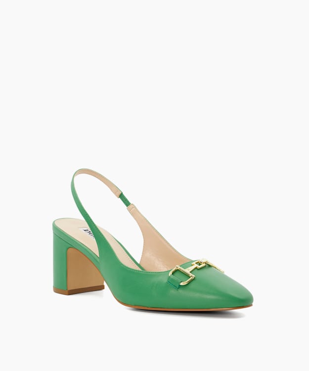 Detailed Green Snaffle Trim Heeled Slingback Courts Dune London