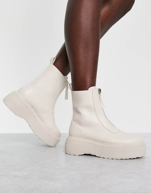 ASOS DESIGN Amsterdam chunky zip front ankle boots in off white ASOS
