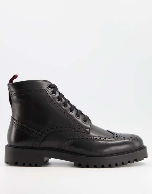 Chunky clearance brogue boots, Walk London sean chunky brogue boots in black leather clearance