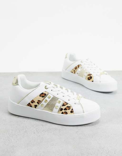 River Island Baby Girl Leopard Print Studded White Trainers UK Size 4