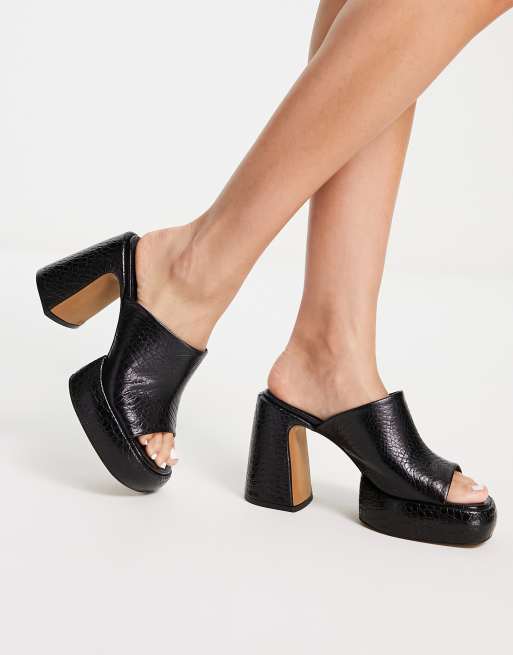ASOS DESIGN Harmonize mid heeled platform mules in black