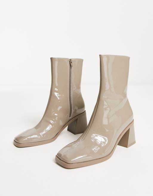 Vegan patent leather clearance boots, The Nancy Boot In Racing Green and White Vegan Patent Ladies clearance