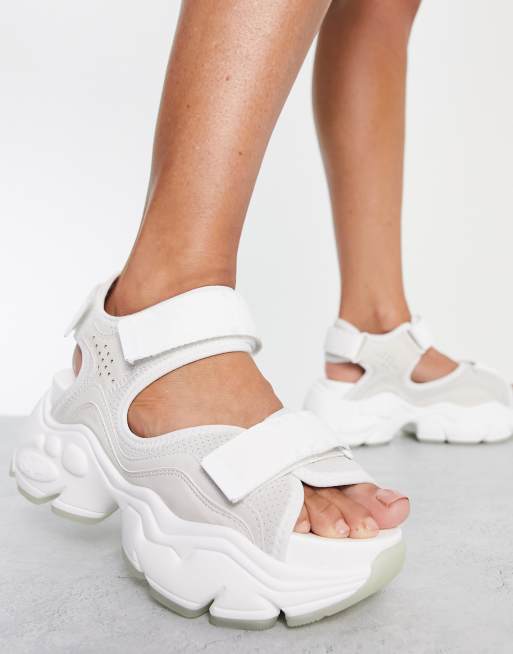Vegan clearance white sandals, Buffalo Binary 0 vegan sporty sandals in white clearance