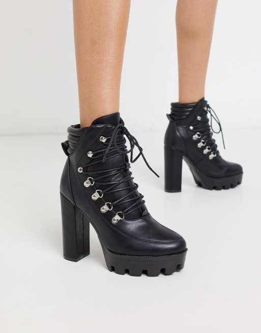 Womens Block High Heel Platform Ankle Boots Hiking Lace Up Side Zip Chunky Stud eBay