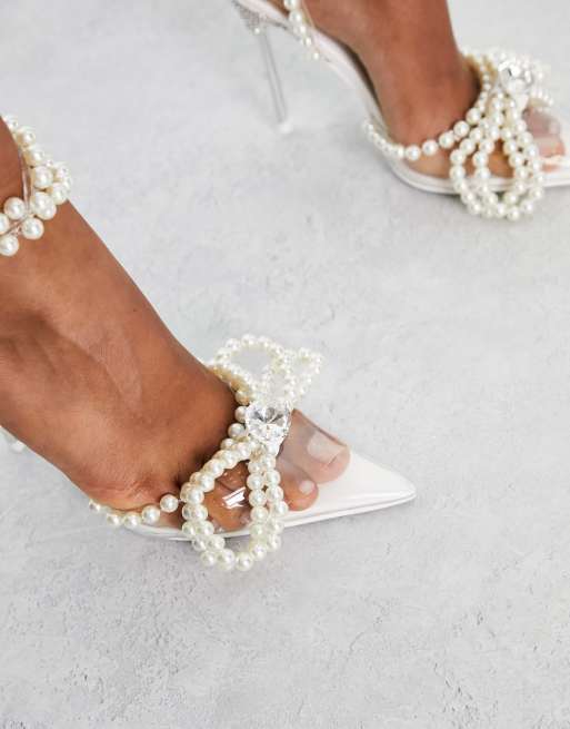 Pearl Bow Perspex Wrap Around Party Pointed Toe Stiletto Court