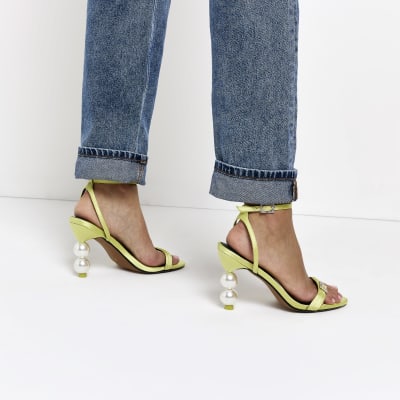 Yellow pearl detail heeled sandals River Island