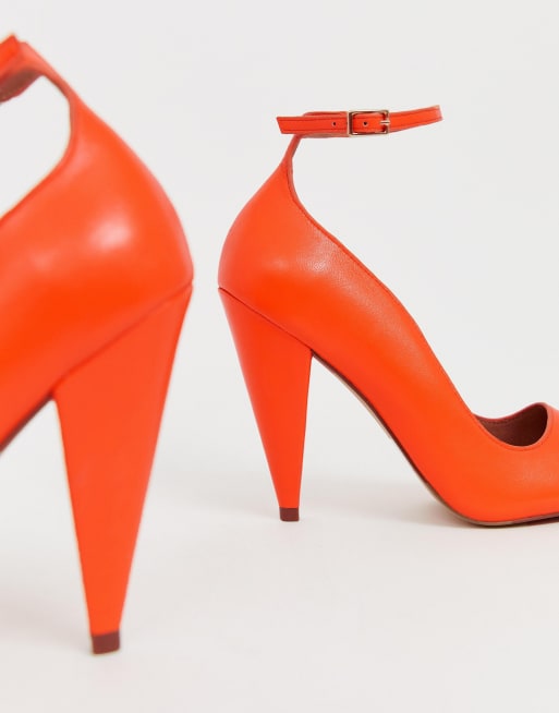 ASOS DESIGN Producer premium leather high heeled court shoes in bright coral