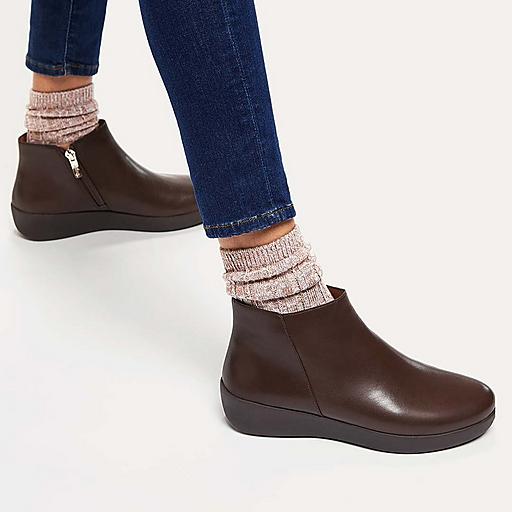 FitFlop F Mode Leather Ankle Boots Chocolate Brown