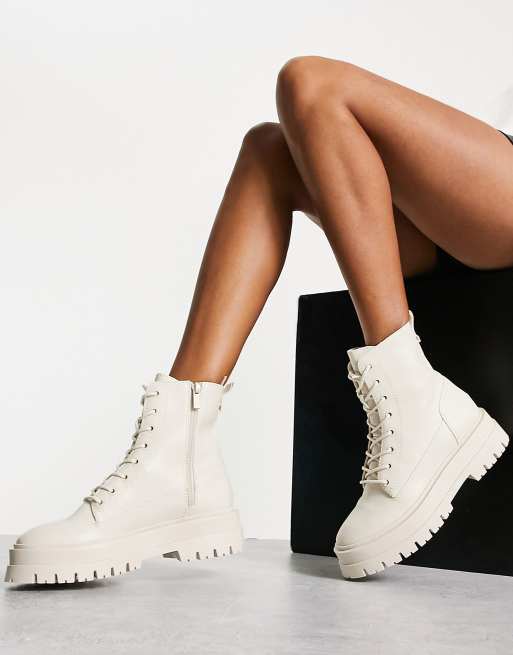 Flat lace up clearance ankle boots uk, Stradivarius lace up flat ankle boot in ecru clearance