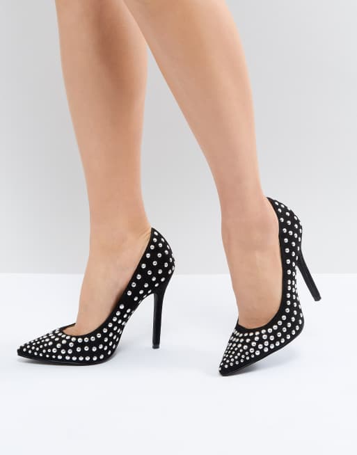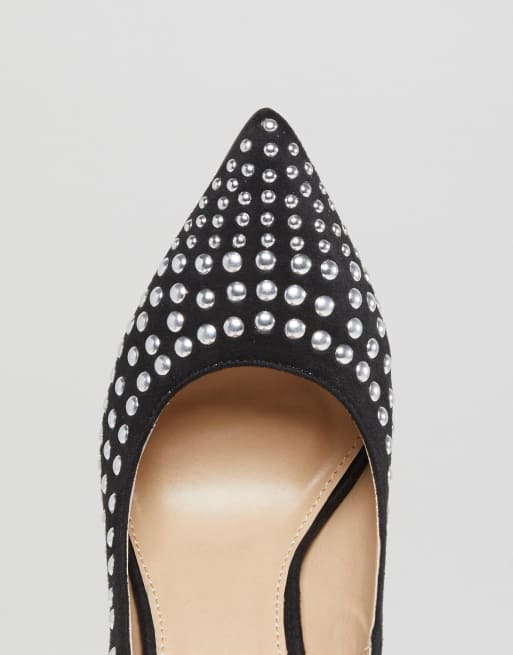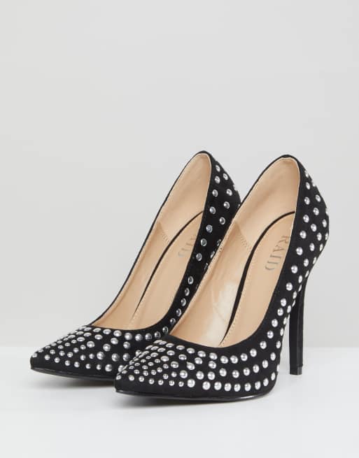 RAID Katie Black Studded Block Heel Court Shoes ASOS