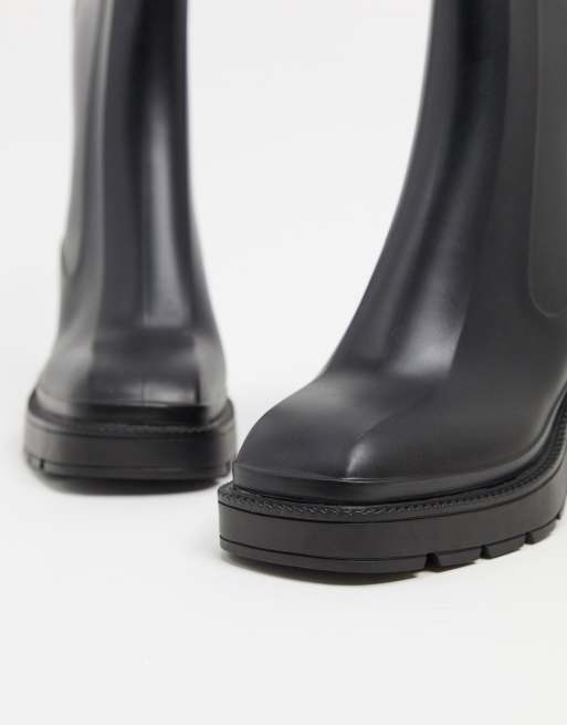 Black heeled rain clearance boots, ASOS DESIGN Grounded heeled rain boots in black clearance