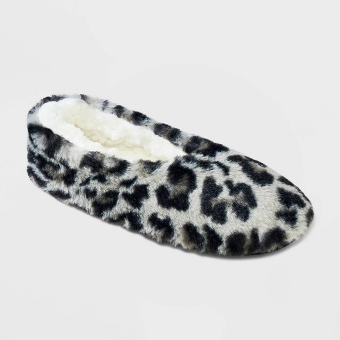 Women s Leopard Print Faux Fur Cozy Pull on Slipper Socks Gray M